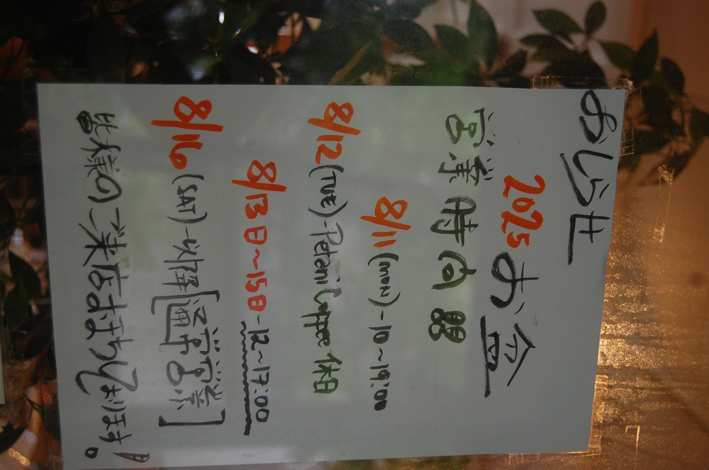 8月12日(火) 定休日